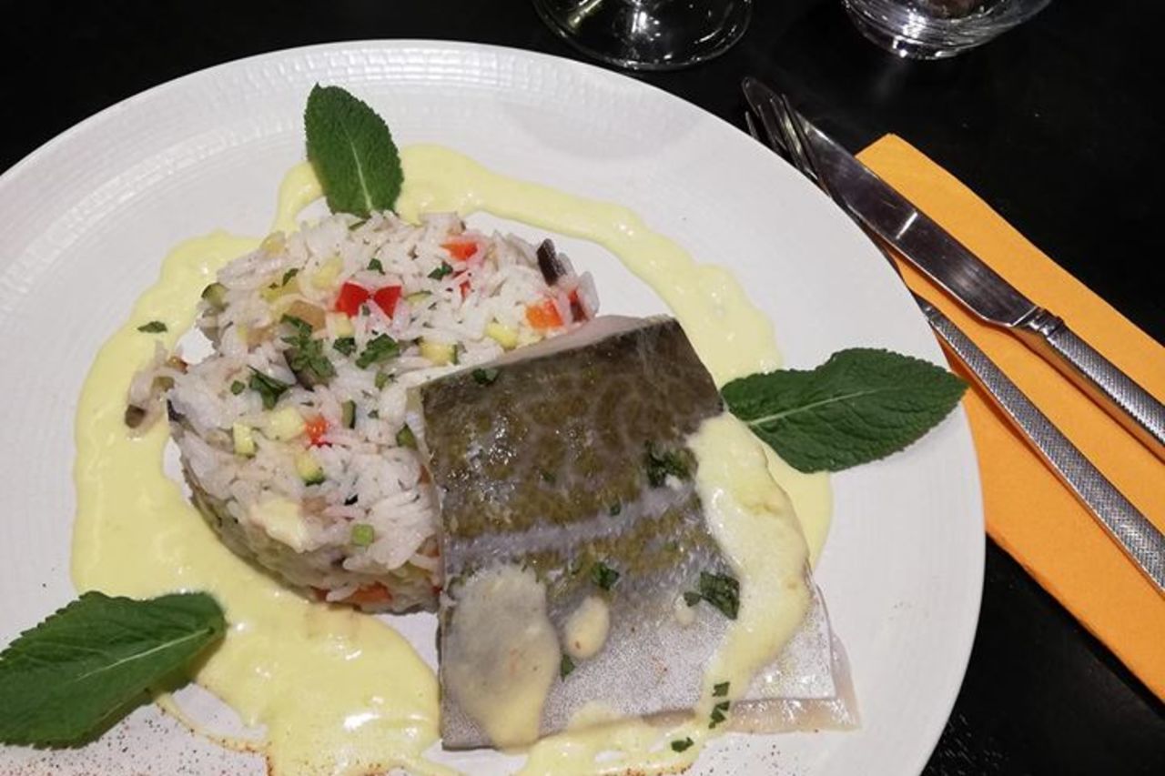 Menu du jour plat: porc au caramel Dessert : Paris Brest maison Bon appétit